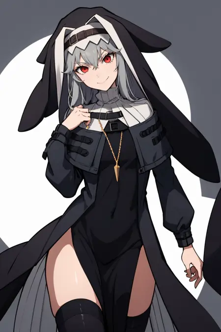 Default Outfit: specterdef, nun, habit, black dress, long sleeves, black pelvic curtain, black thighhighs, necklace