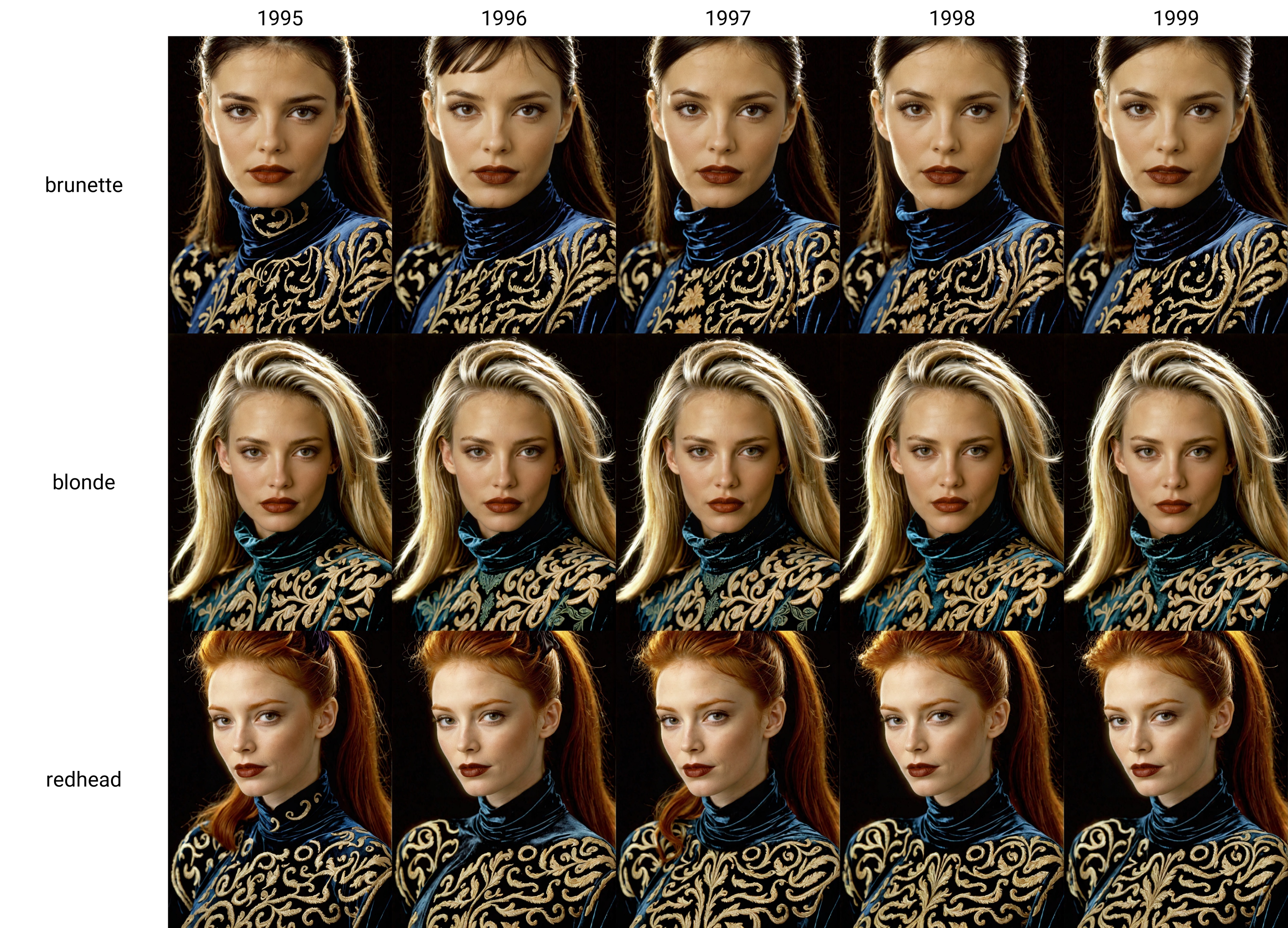 Trained on SDXL base image using images from a monthly periodical in the 1990s. This enables picking a broad (decade) or narrow (year) time period to aggregate a character.