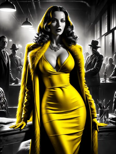 영화 속 'yellow bastard'의 노란색을 LoRA에 학습시켜보았으며, 이는 'mad-creep' 트리거를 사용합니다. 그러나 테스트 결과, 원하는 객체 앞에 단순히 'yellow'라고만 써도 유사한 효과를 얻을 수 있었습니다.
