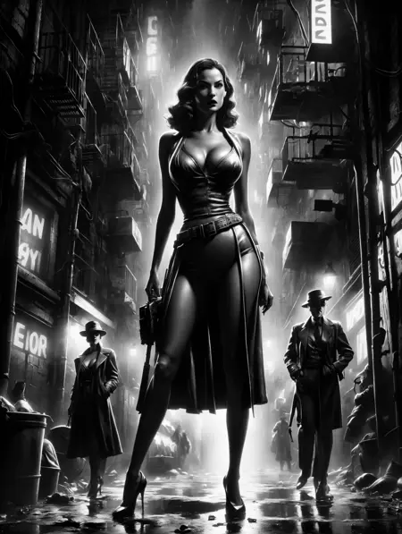 this time I tried to emulate the noir style of the movie adaptations of the comic Sin City.