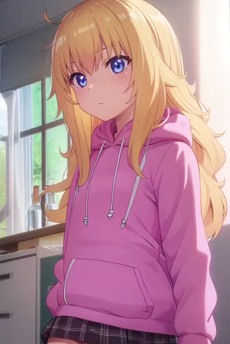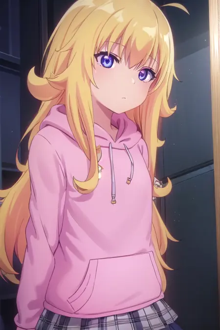 gabriel tenma white, long hair, blonde hair, (purple eyes:1.1), ahoge,