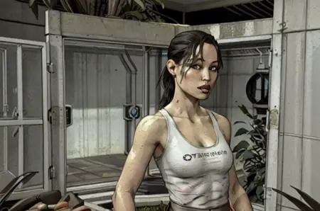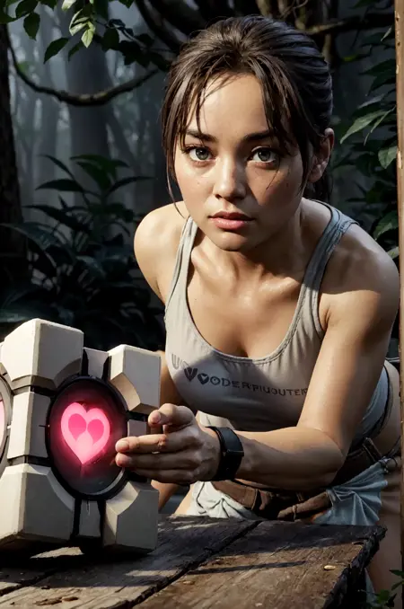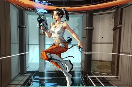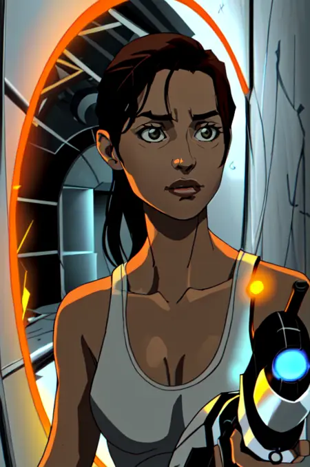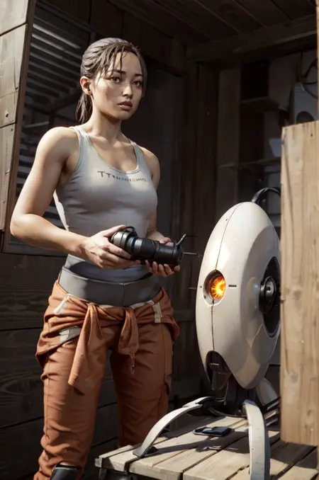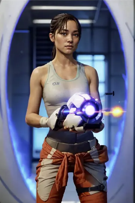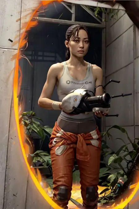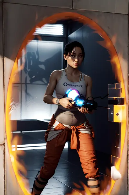 This Lora has p2chell, p2cube, p2turret as tags. (for Chell, a cube or a turret).