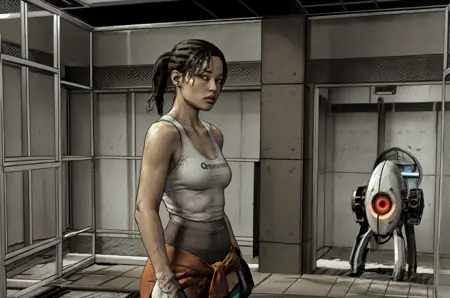 이 LoRA는 p2chell, p2cube, p2turret을 태그로 포함합니다. (Chell, 큐브 또는 터렛용)