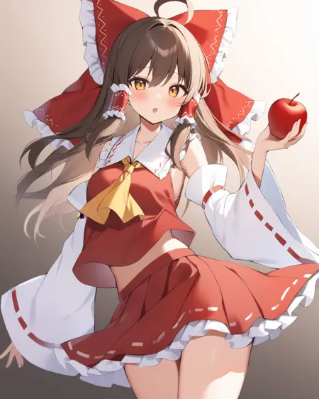 reimu_touhou, hakurei_reimu_touhou, 1girl, detached_sleeves, hair_tubes, wide_sleeves, ribbon, red_skirt