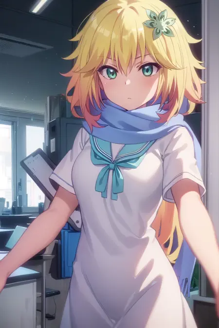 dress, school uniform, scarf, serafuku, short sleeves,