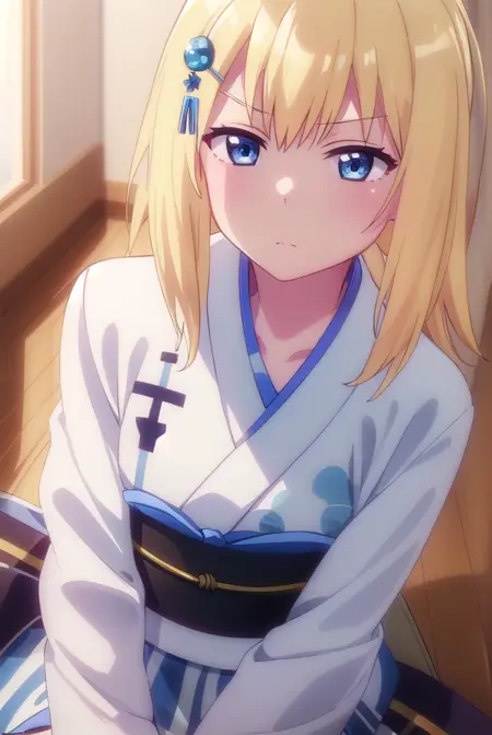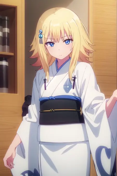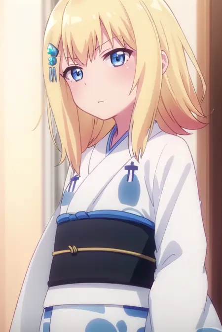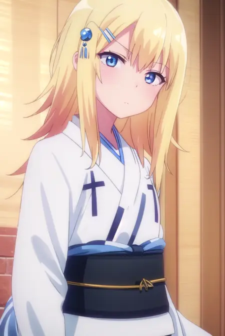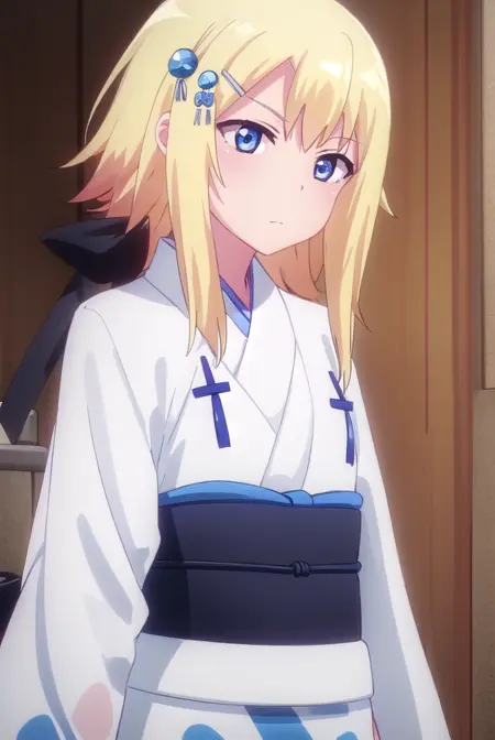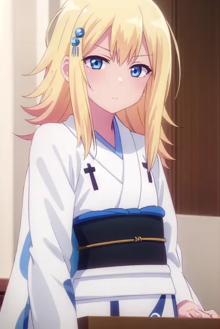 zeruel tenma white、青い目、金髪、髪飾り、髪留め、
