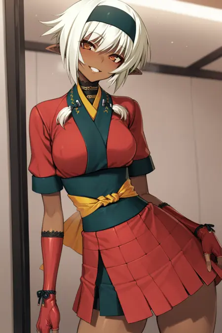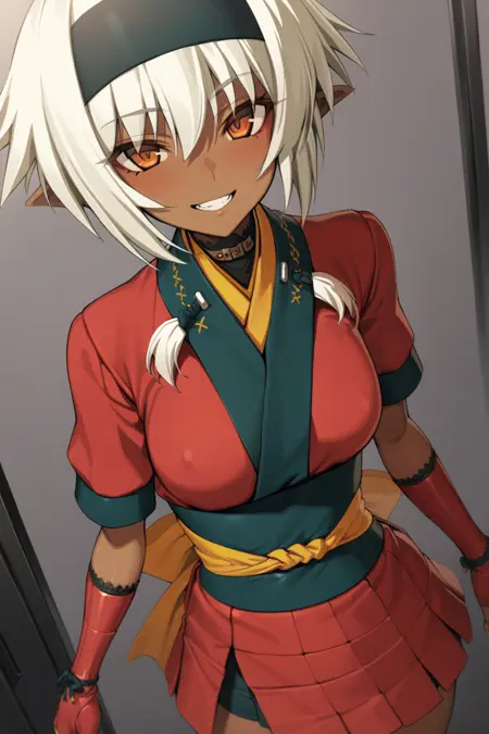 Base Outfit: hairband, japanese clothes, fingerless gloves, sash, choker, short kimono,