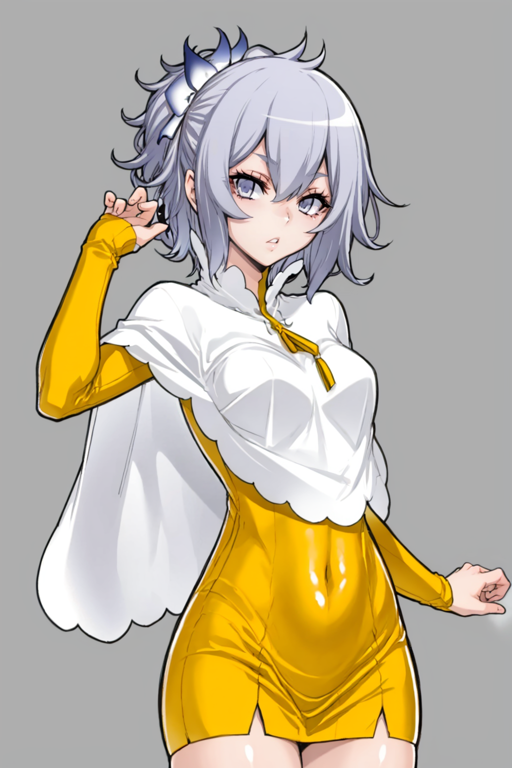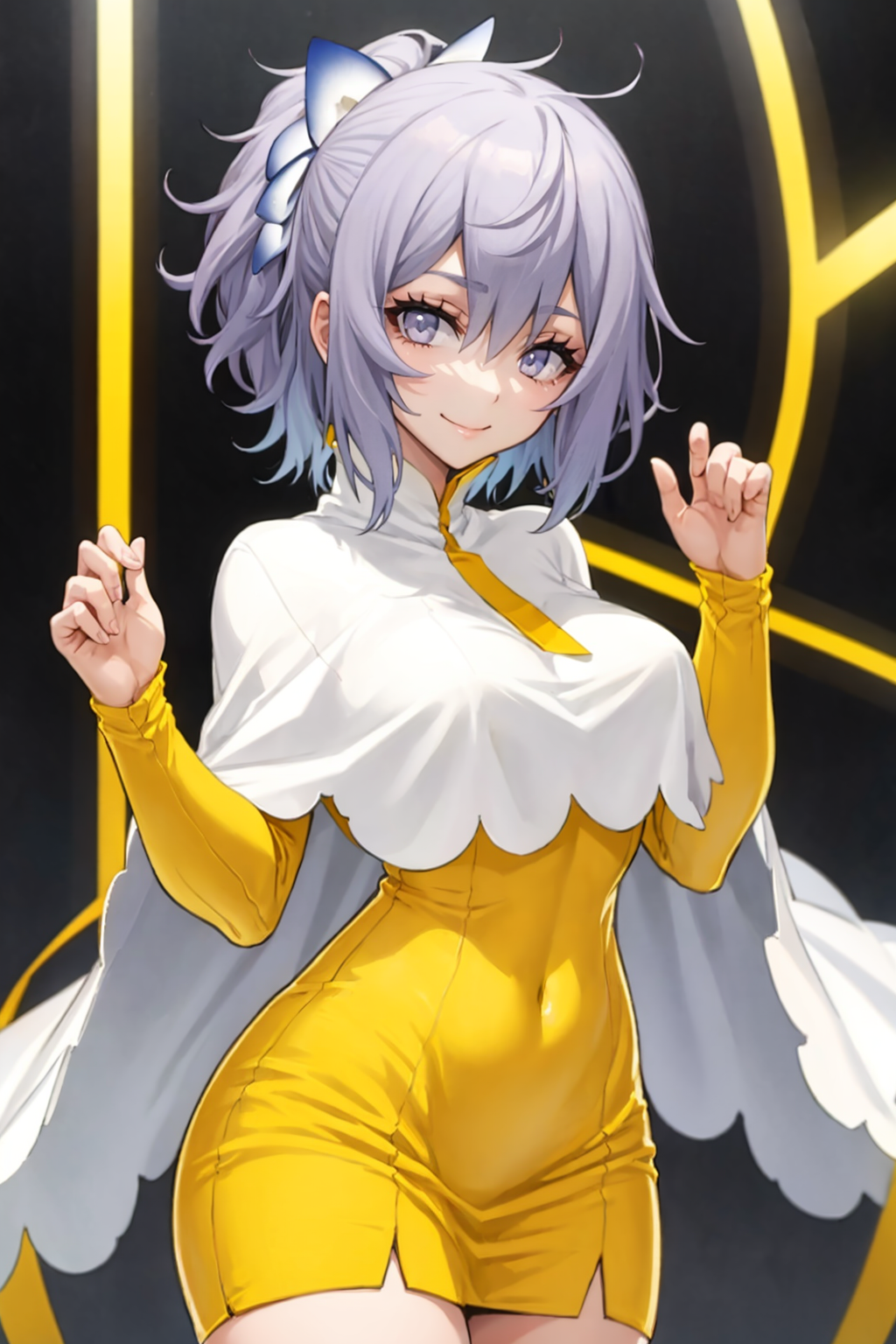 For her ending outfit it's "miyakoend, yellow dress, white capelet"