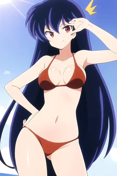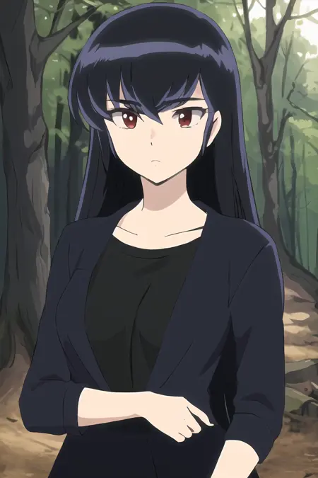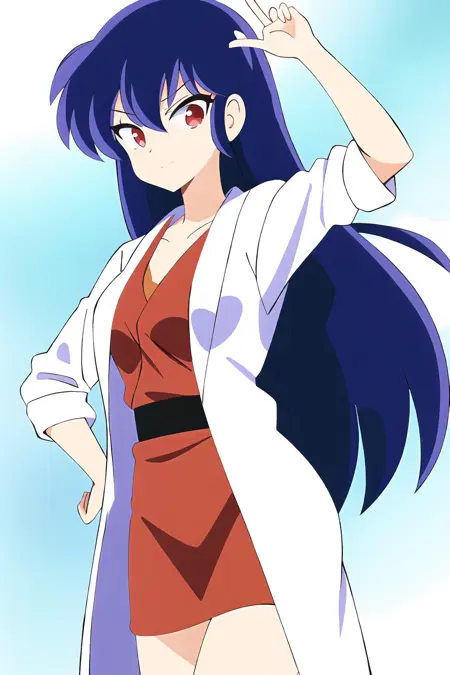 プロンプト:最高の品質、1人の女性、立っている、美しい顔、赤い目、目と目の間の髪、長い髪、うる星ではじまる、桜、