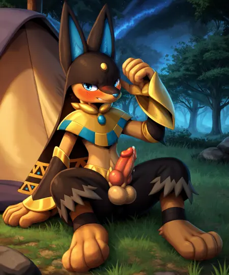 Supporting: anthro, hi res, canid, clothing, fur, jackal, anubian jackal