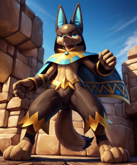 Supporting: anthro, hi res, canid, clothing, fur, jackal, anubian jackal