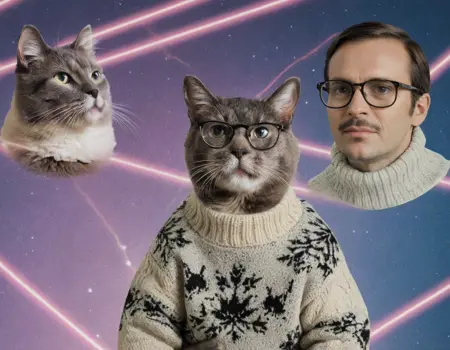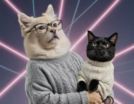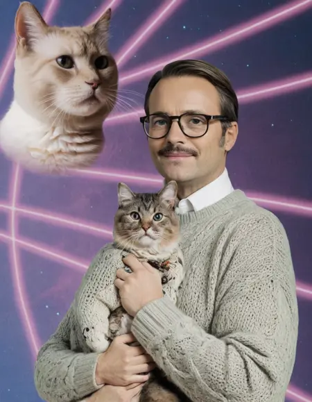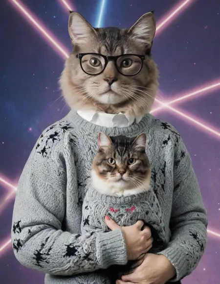 DPM++ SDE (not Karras) was having the most luck, as it's a little more dreamy, and euler A is more likely to actually do the double exposure better, but is awful at cats.