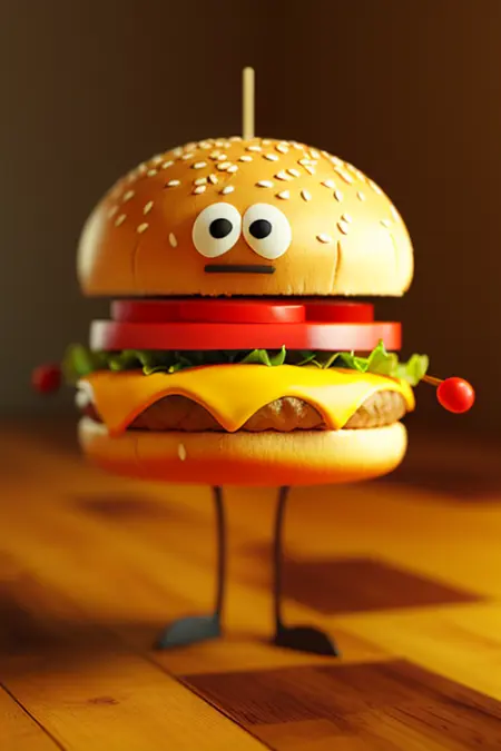 For example: a hamburger, cartoon Character, 3D, C4D, blender