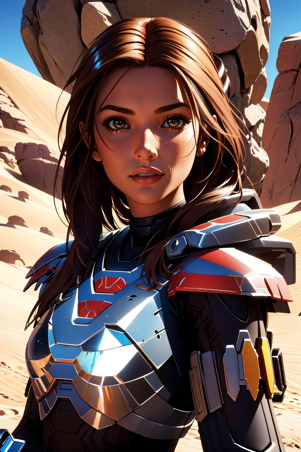 "shaevizla, mandalorian armor, long hair, reddish brown hair, brown eyes" and "helmet"