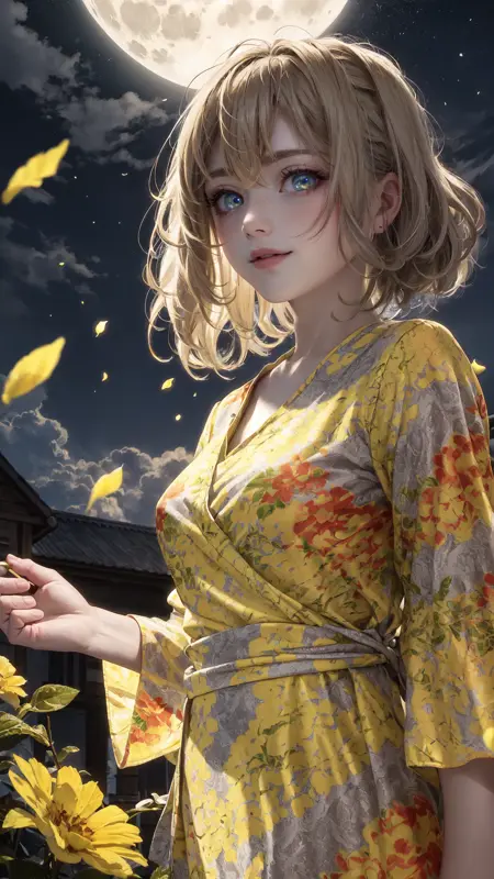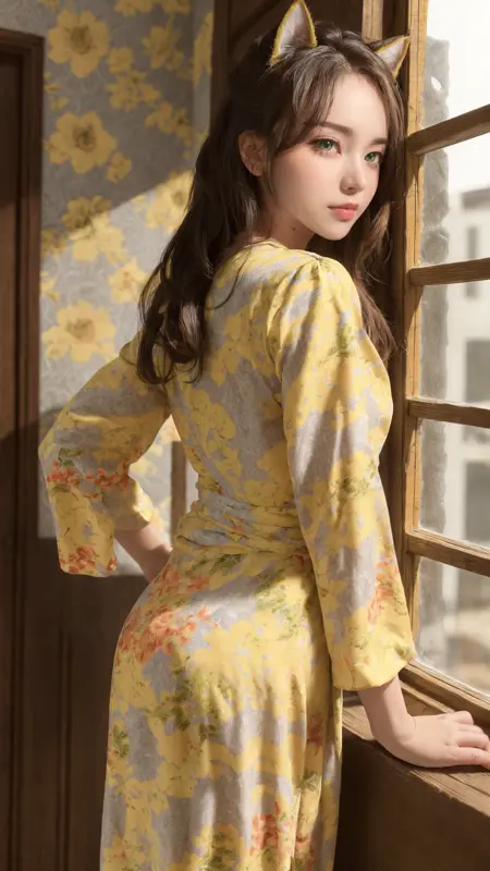 트리거 단어: tutututu, dress, yellow flower dress, long sleeves, obi,