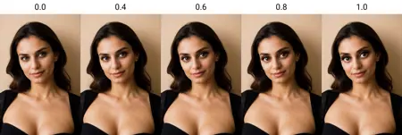 放大后的眼睛看起来更接近专业修图师的常见处理效果(修图师通常都会放大眼睛)。我发现这有助于提升表情的可见性,总体上让大多数照片看起来更出色。此外,当人物因某些表情(如大笑)而自然眯眼时,这个LORA也能有效让眼睛更突出。