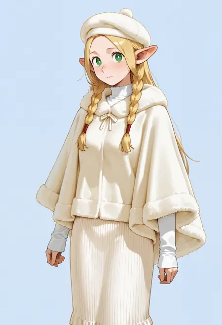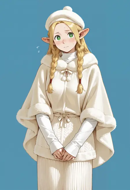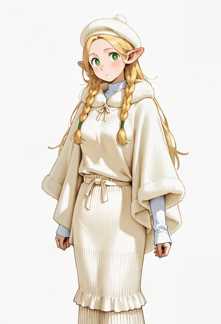 White Fur Cape & Mermaid Frilled Knit Skirt