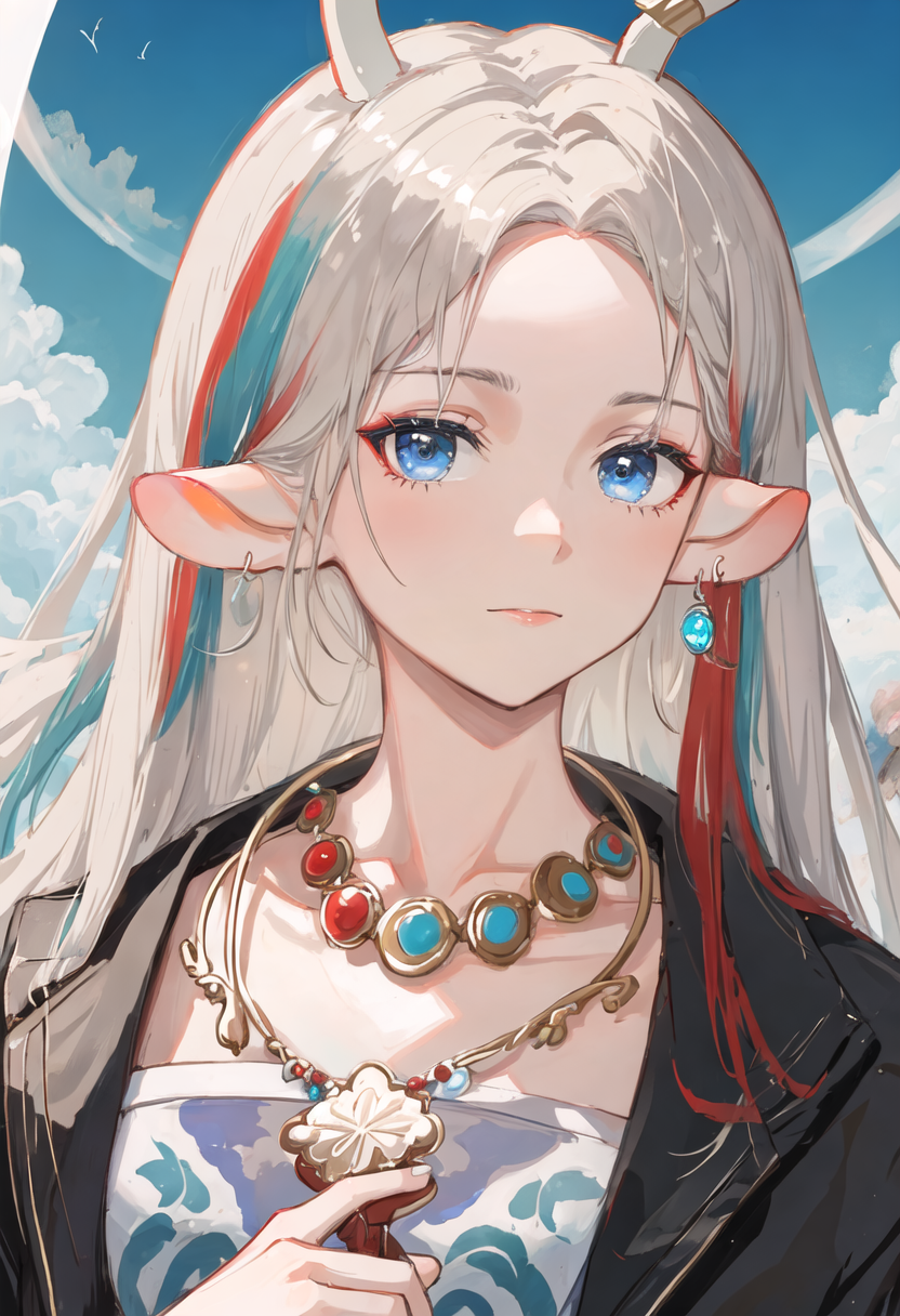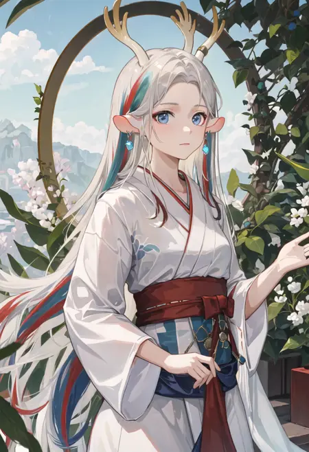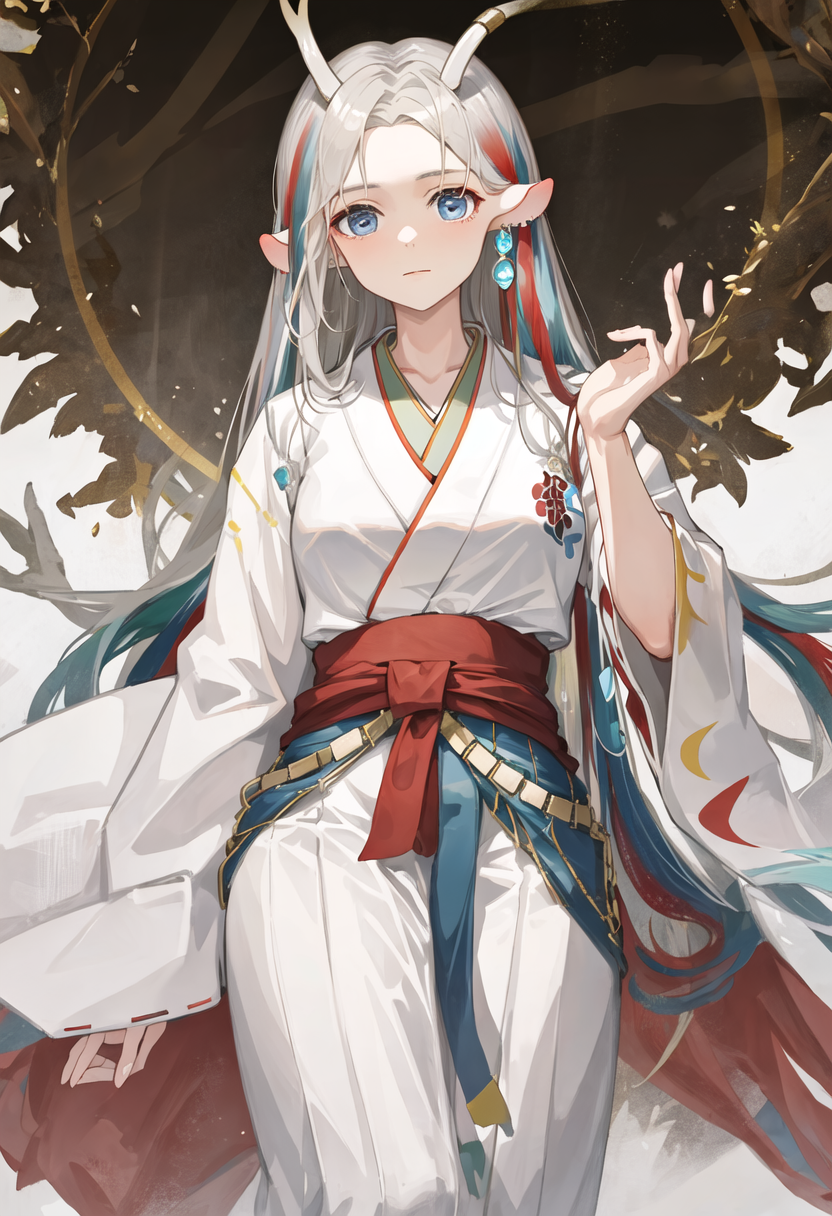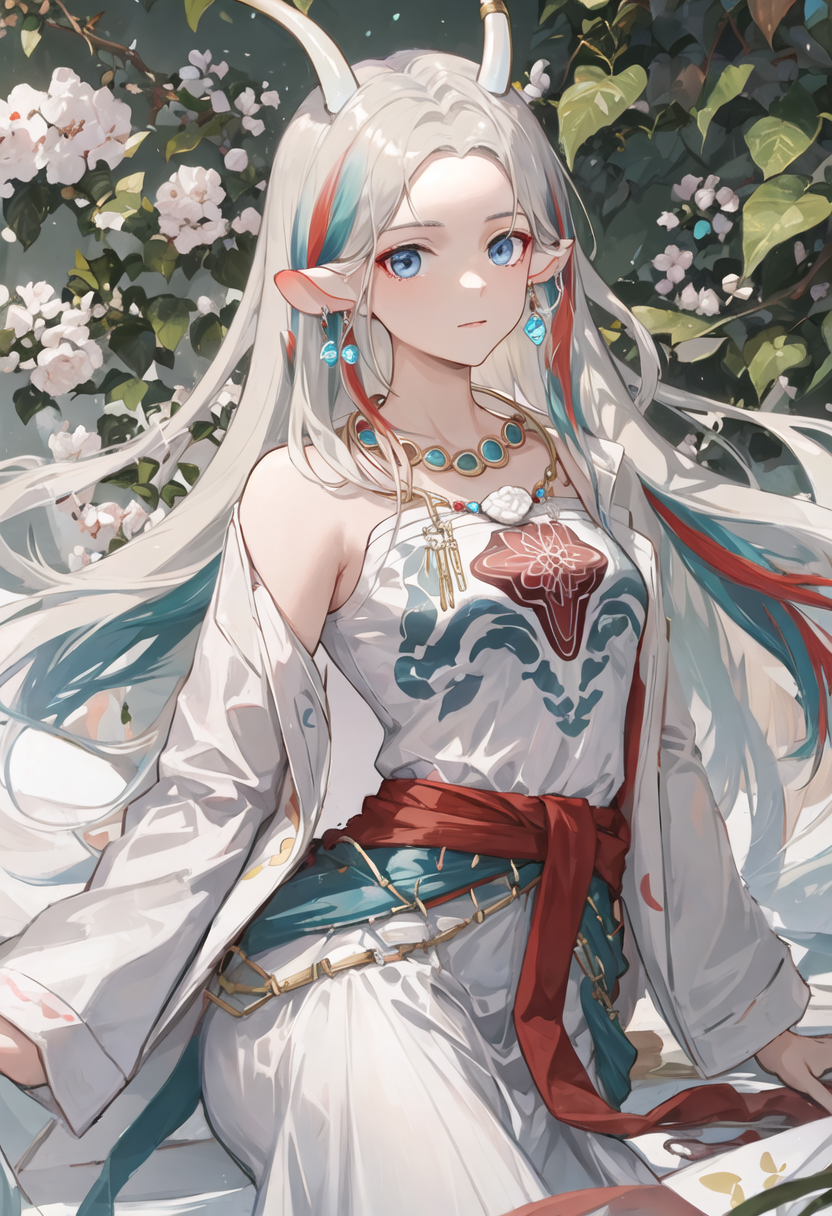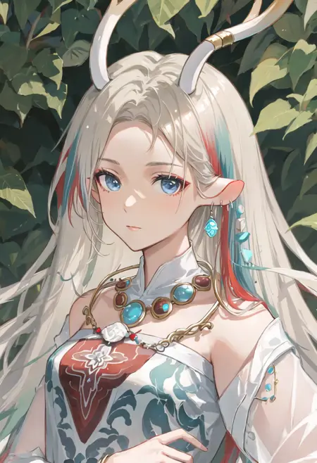 - The pruned character tags are long_hair, multicolored_hair, red_hair, animal_ears, earrings, blue_hair, blue_eyes, deer_ears, very_long_hair, grey_hair, streaked_hair, white_hair. You can add them into prompts when core features (e.g. hair color) of character is not so stable.