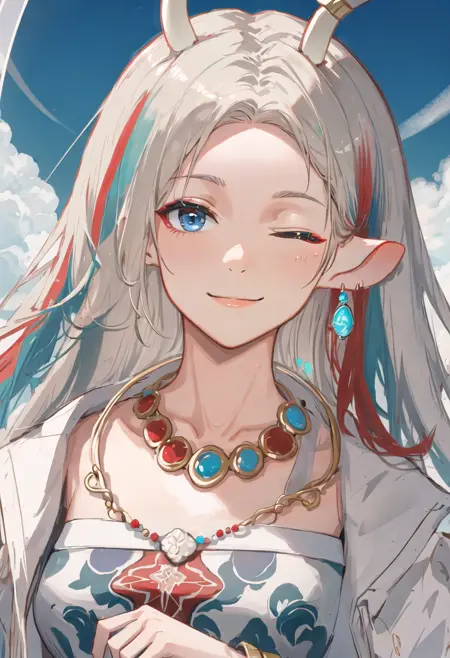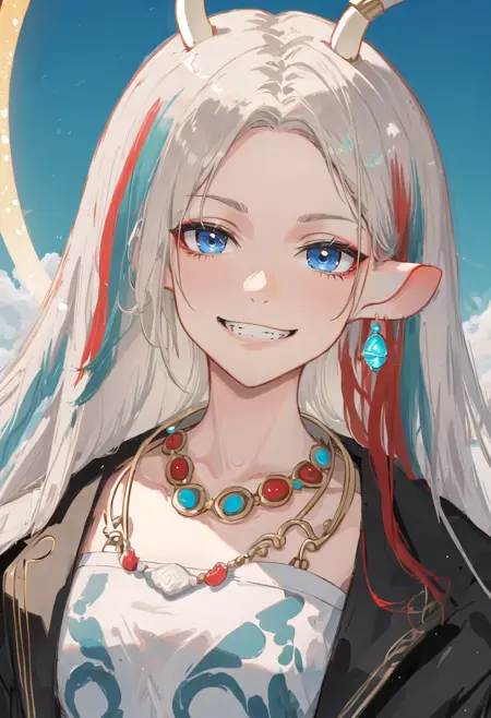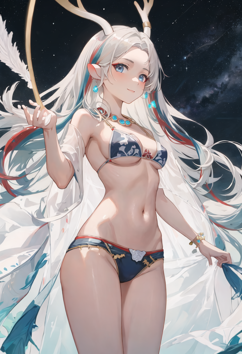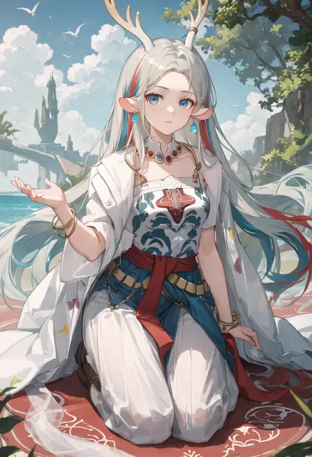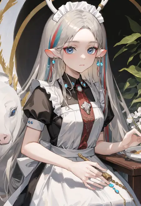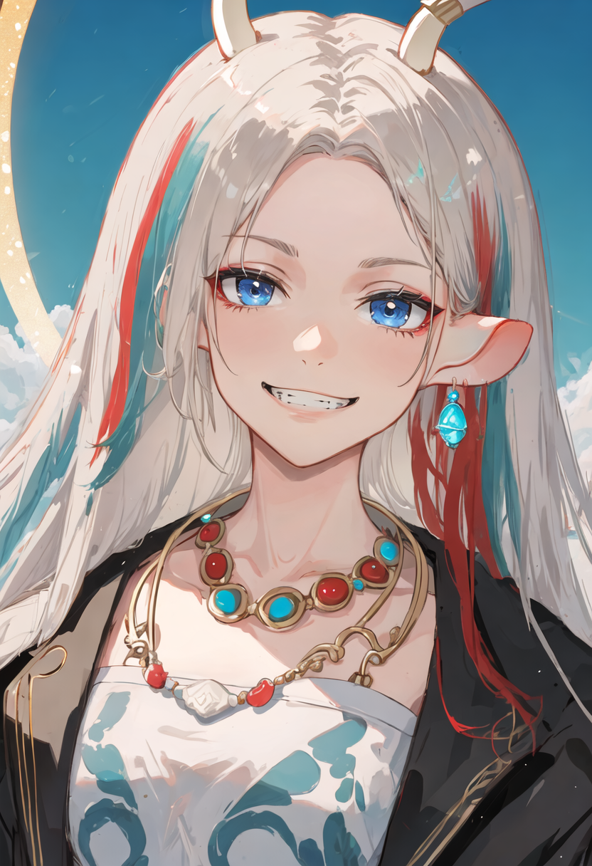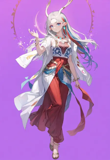 - The pruned character tags are long_hair, multicolored_hair, red_hair, animal_ears, earrings, blue_hair, blue_eyes, deer_ears, very_long_hair, grey_hair, streaked_hair, white_hair. You can add them into prompts when core features (e.g. hair color) of character is not so stable.