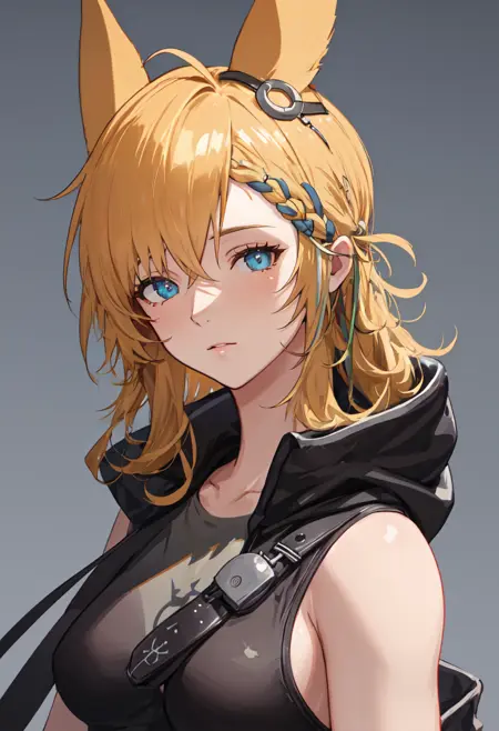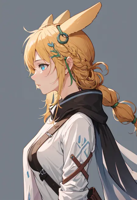 トリガー語は kroos_arknights で、削除されたタグは animal_ears, rabbit_ears, blonde_hair, hair_ornament, braid, long_hair, ahoge, breasts, bow, green_bow, hair_bow, hairclip です。ある時、特定の特徴(例:髪の色)が安定しない場合、これらのタグをプロンプトに追加してください。