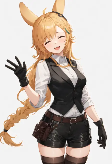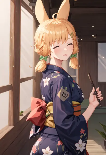 - The pruned character tags are animal ears, rabbit ears, blonde hair, hair ornament, braid, long hair, ahoge, breasts, bow, green bow, hair bow, hairclip. You can add them into prompts when core features (e.g. hair color) of character is not so stable.