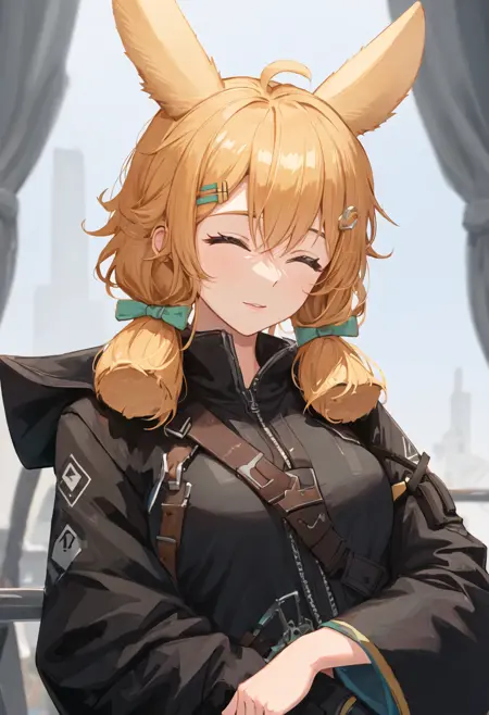The trigger word is kroos_arknights, and the pruned tags are animal_ears, rabbit_ears, blonde_hair, hair_ornament, braid, long_hair, ahoge, breasts, bow, green_bow, hair_bow, hairclip. When some features (e.g. hair color) are not so stable at some times, you can add these them into your prompt.