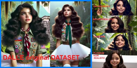 “DALLE女童子军大使”是一个作为实验而诞生的虚构角色,完全由人工生成。在我发现了一种能与DALLE(ChatGPT内置的图像生成器)保持一致性的技巧后,我生成了大量这位女童子军的图像,只是为了验证这个概念。之后,我意识到当聊天窗口关闭时,这个角色将不复存在,这实在太遗憾了。于是我请用户“Iselestia”使用我精选的图像数据集为Stable Diffusion训练一个LORA模型……他非常友善地接受了这个请求……