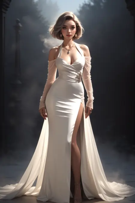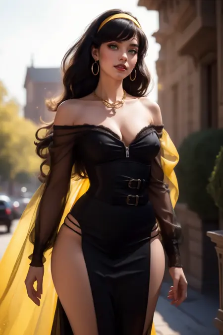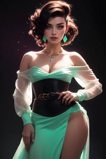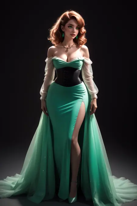 With Corset/Cincher/Wrap: c0rs3t, elegant glitter:1.1 tulle dress, (pelvic curtain), off shoulder, long sleeves, form fitting ,(see-through), ((ornate:1.1 belt)) - replace belt with corset or waist cincher or wrap, hourglass figure)