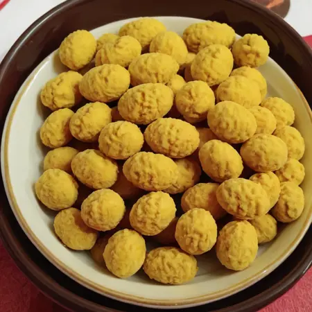 전통적인 간식 '생인탕'은 설날 축제 기간 동안만 구할 수 있습니다. 땅콩을 설탕으로 코팅한 이 간식은 빨간색과 흰색 두 가지 색상으로 제공되며, 사대 간식 중 하나입니다.