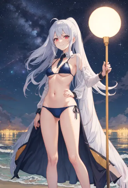 - 精简后的角色标签为:long_hair、red_eyes、ahoge、twintails、white_hair。当角色的核心特征(例如发色)不够稳定时,您可以在提示词中添加这些标签。