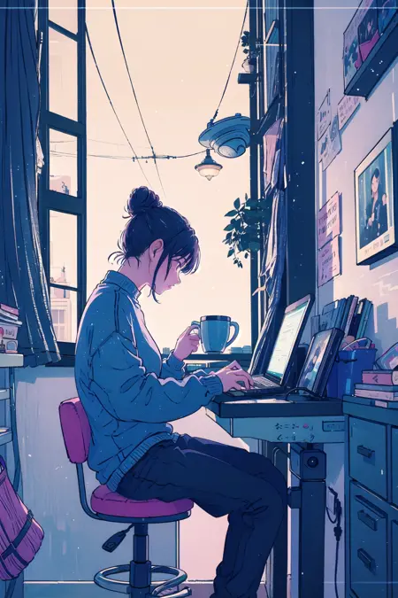 这是一个基于159张关于lofi与线条清晰风格图片训练的LoHa模型。整体色调非常接近晚秋,这也是“白露”这个名字的由来。