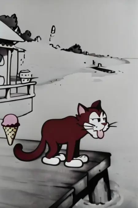 ℹ️ Trained with 2290 images (5 frames per second) from Steamboat Willie animation, hand captioned.