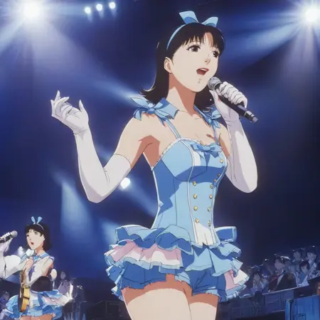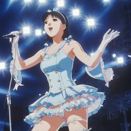 Trained on screenshots from the movie Perfect Blue. I tried to take screenshots of all the pivotal scenes in the movie, as well as lots of well-framed shots of various faces and people, as well as a few shots of only buildings or objects.