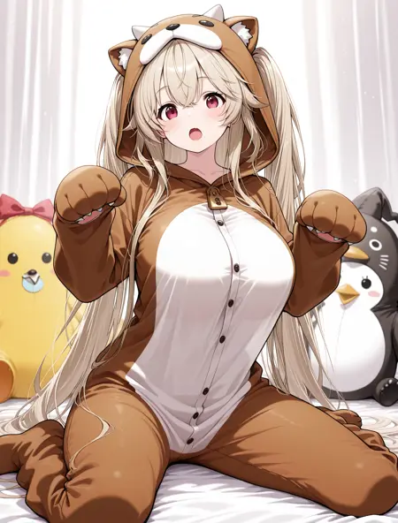 原版(origen):anchorage_\(azur lane\),twintails,red eyes,shorts, off shoulder, long_sleeves,sleeves past wrists, coat,