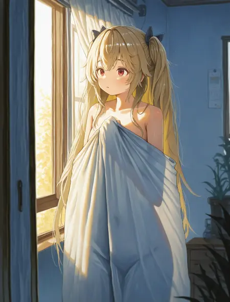 原版(original):anchorage \(azur lane\),two side up,clothes around waist,crop top,