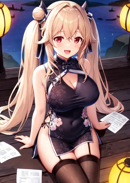 舟畔共明月 (moonlit_boat_ride):anchorage \(china dress\) \(azur lane\), garter straps,