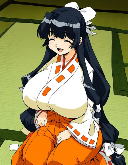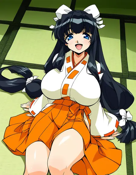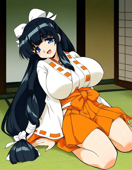 miko, japanese clothes, orange hakama, hakama skirt, ribbon,