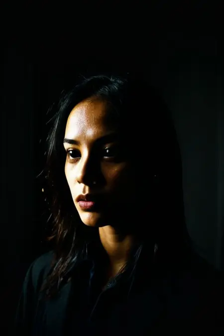 Named after the famed artist, Rembrandt lighting is a dramatic portrait technique known for its single light source positioned off-camera. This creates a signature triangular highlight on the lit cheek, while plunging the other side into dramatic, yet nuanced, shadows. This play of light and shadow adds depth, dimension, and a hint of mystery to the subject, making it ideal for capturing a range of emotions and creating expressive portraits.