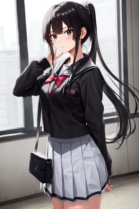 例では、clip_skip=2、LoRA重み=1、高解像度修整にESRGAN_4x(ノイズ除去強度0.5)を使用しています。