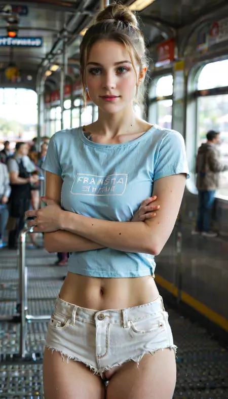 Modifiers: Standing, shorts pull, detailed cutoff jean shorts, cutoff jean shorts, showing off her ass, showing off her pussy, legs spread, legs up, standing, legs together, laying down, sitting, hand on own ass, hand on hips, hand on knees, hand on pussy, pussy lips visible (use negatives such as mutated vagina, or distorted vagina to decrease elements you don't care for)