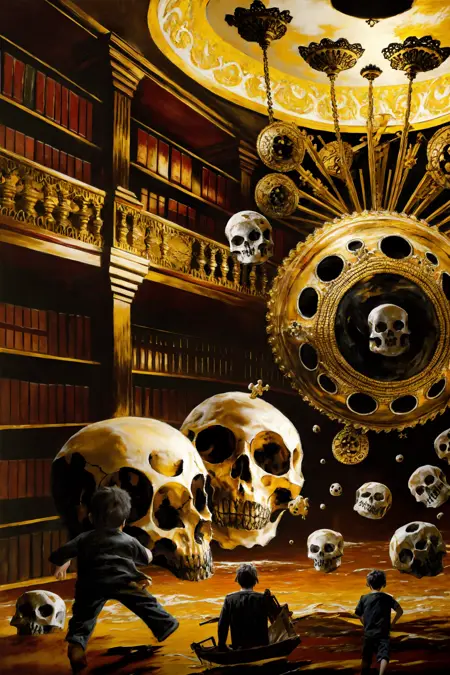 Variation keywords: oil painting \(medium\), painting \(medium\), traditional media, abstract, scenery, dark, horror \(theme\), monster etc.