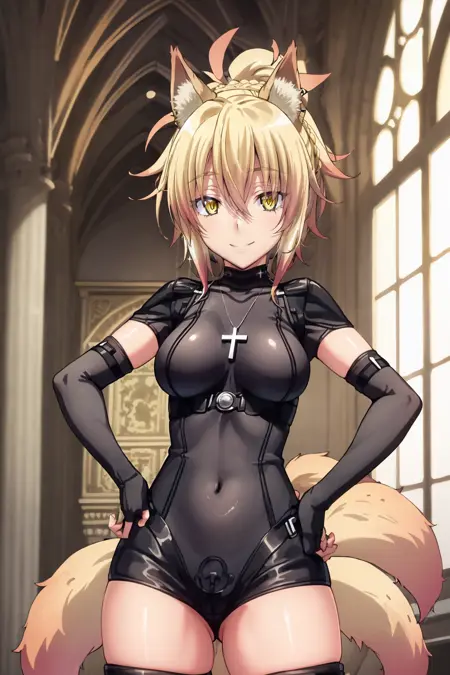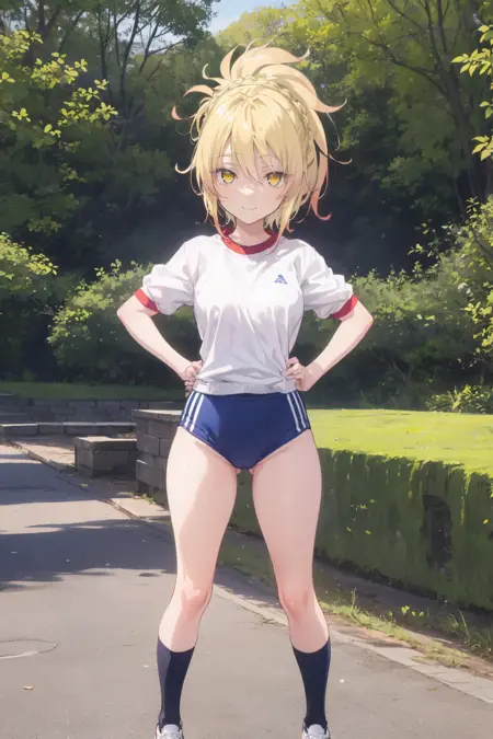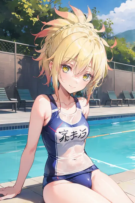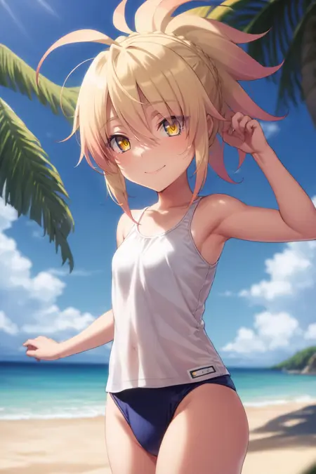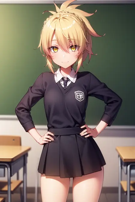 Basic prompts : 1girl, blonde hair, short hair, ponytail, yellow eyes