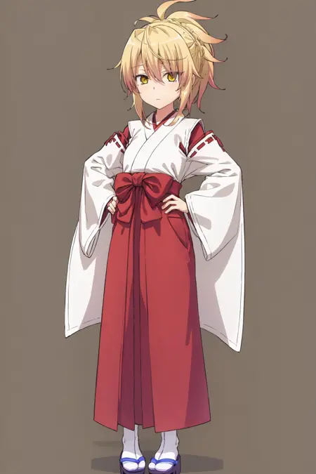 Miko outfit prompts : red hakama, japanese clothes, miko, sandals