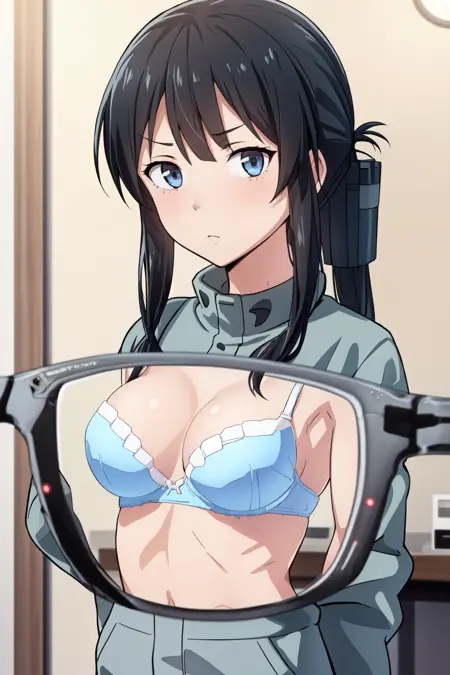 A lora conteining material to make a X Ray Glasses function, a glasses in style of those in various manga and anime (like To Love Ru) that can see under the clothes and thought cloth layers