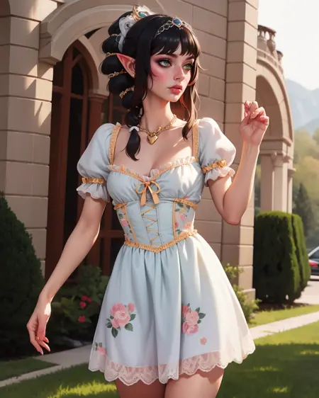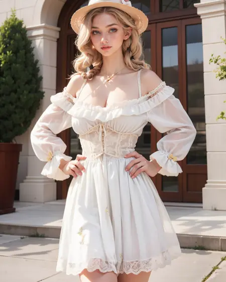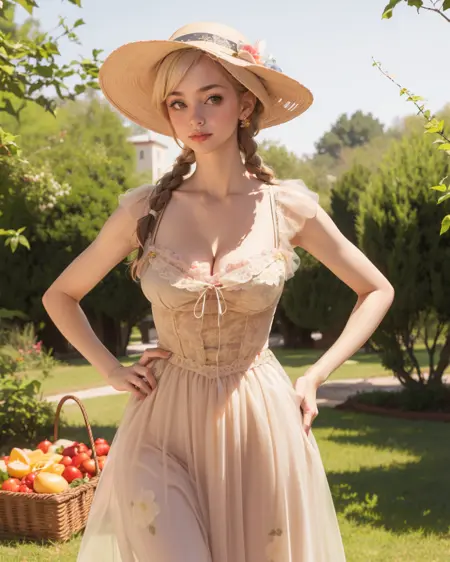 For the real cotton/tulle loose fabric, realism is a better angle, so semireal like 2dn Pony or PonyRealism will yield more "Cottage" vibes. Default Pony is pretty flat on fabrics like that.