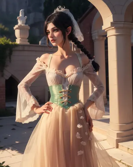This is very modular within this theme, long sleeves, puffy sleeves, detached, corset, short and long skirts, sleeves past wrist, flowers, fairy wings, etc.
