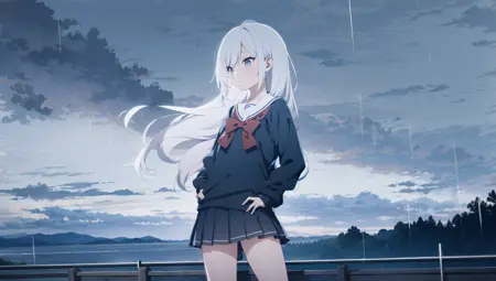 Silicon29 - Trained on Silicon29-Dark, it sacrificed a bit BA's clean line art, but it has a more BA-ish vivid color+god ray than CF3 version.