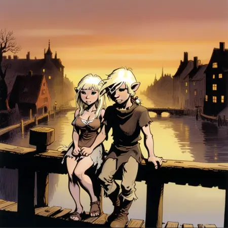 This time, once again in a comic book style. The creation of this Lora was inspired by the work of the outstanding Polish artist Grzegorz Rosiński. In 1987, together with Jean Van Hamme, they created the award-winning black and white story titled "Szninkiel." I encourage those who are not familiar with this excellent comic to explore its content.