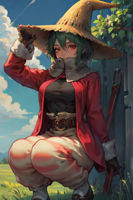 The generic Black Mage job from Final Fantasy Tactics. As usual, not a lot is baked in the main activation tag, so it's pretty easy to use this as a costume lora and change the hair and eyes. It's also simple to change the coat color and remove the hat just by changing/removing the appropriate tags.