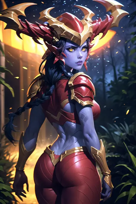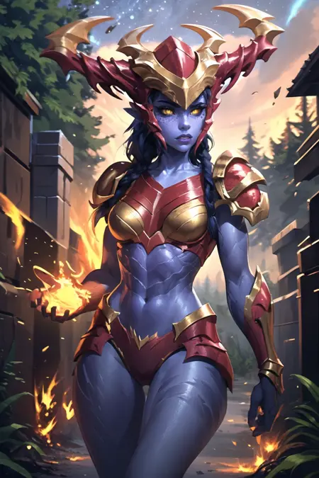 Purple + dragon girl = good happy times. Shyvana always had a really cool design and I wanted to make a more flexible lora where you can remove the helmet. There are mild cases that a hat may appear but it generally is rare. I hope you all enjoy.